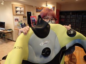 学科講習中にタイミングよくオーダーいただいたドライスーツが到着!!