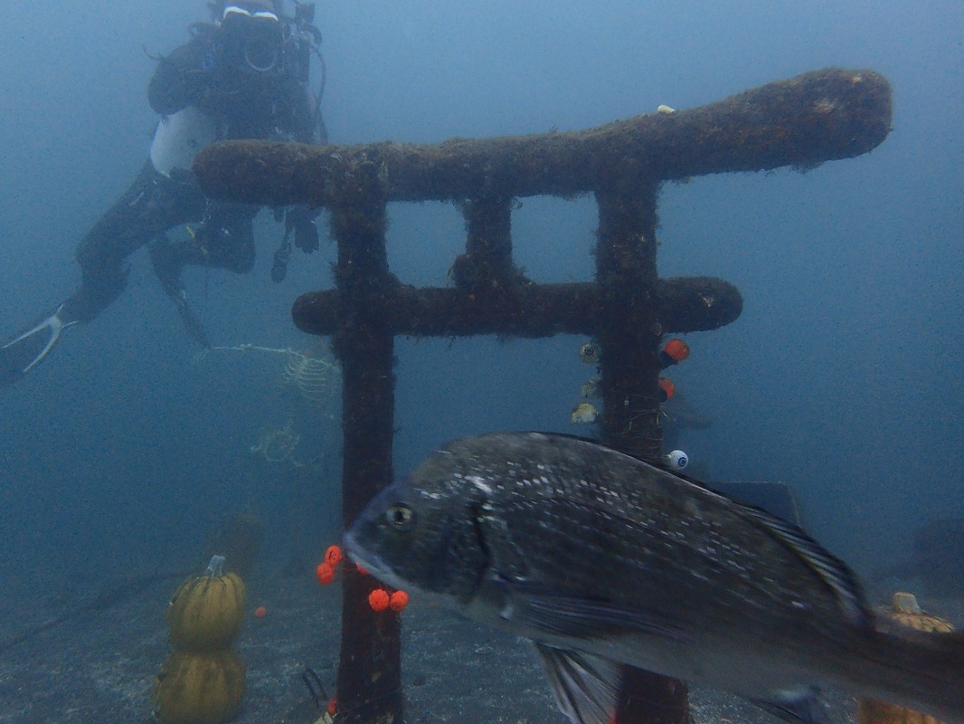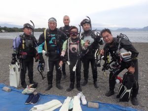さすがに最近の気温だと皆さんドライスーツに衣替えですね。水温はまだ20℃あるのでインナーは薄手のもので快適です。