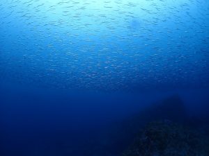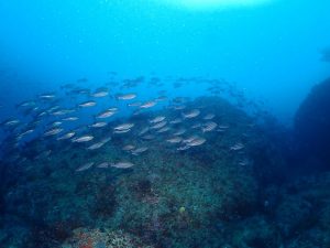 洞窟を抜けるとイサキの大群が目の前を横切ります