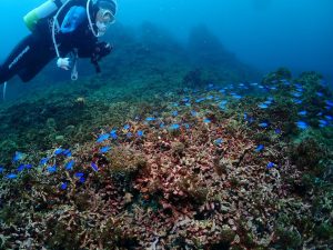 スミツキトノサマダイやアケボノチョウチョウウオなどなどサンゴの間にはまだまだ元気な南方系の魚がいっぱいでしたがカメラのバッテリー切れ・・・・