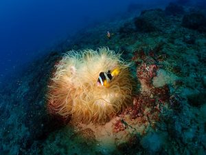 夏の高水温で白化したイソギンチャクが水温低下で少しずつ色を取り戻していました。