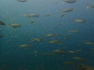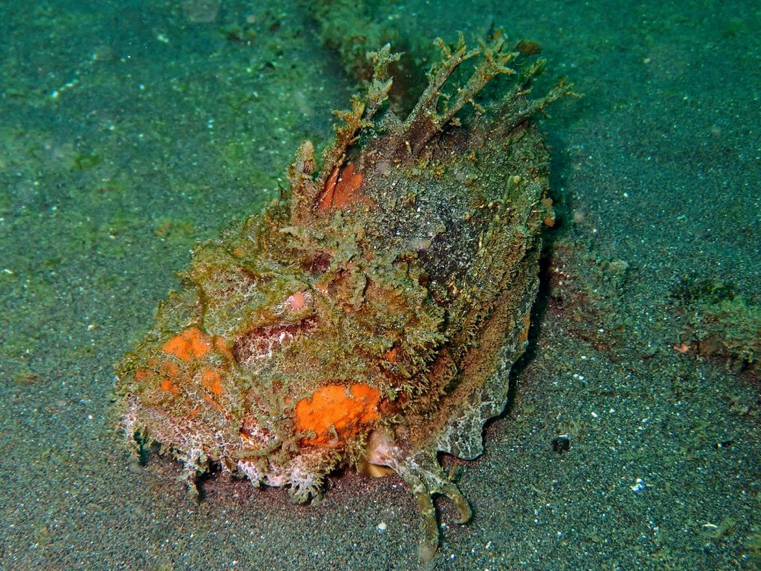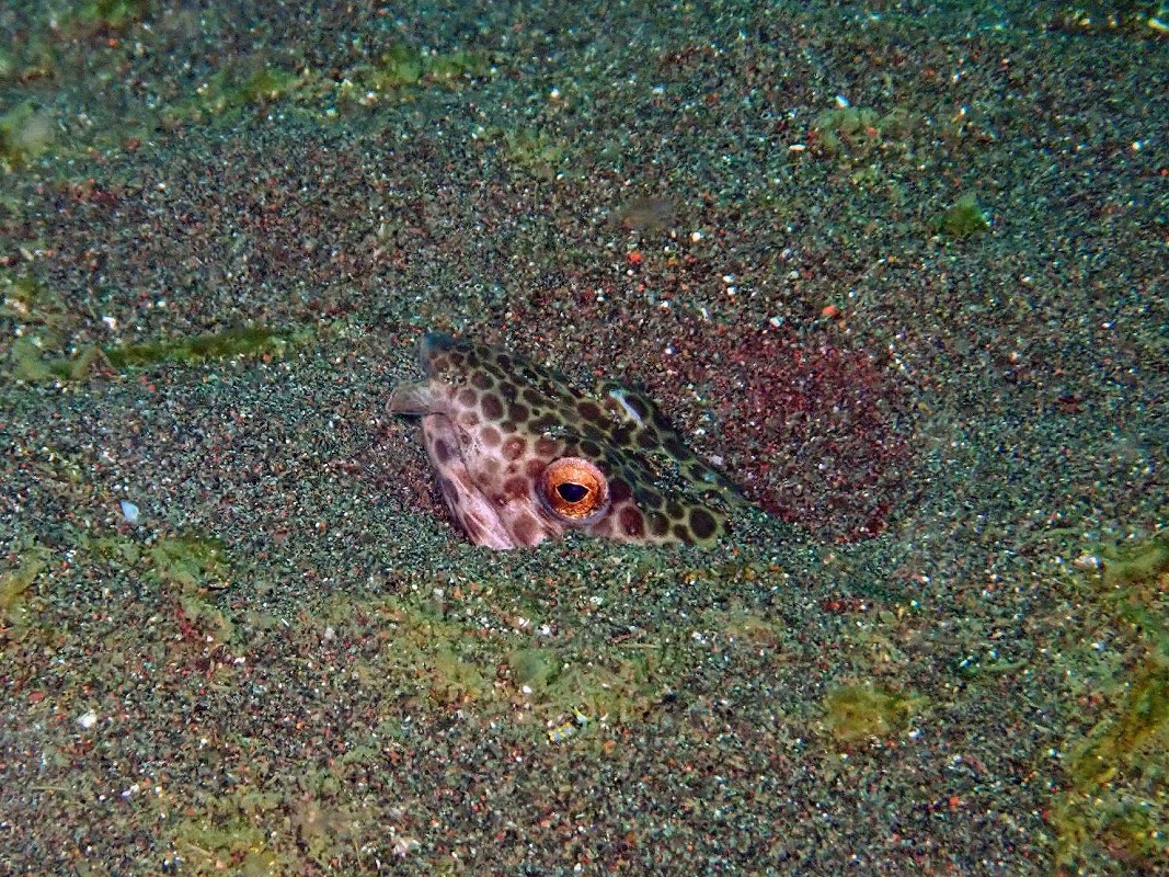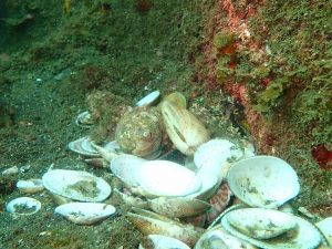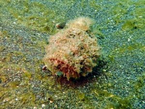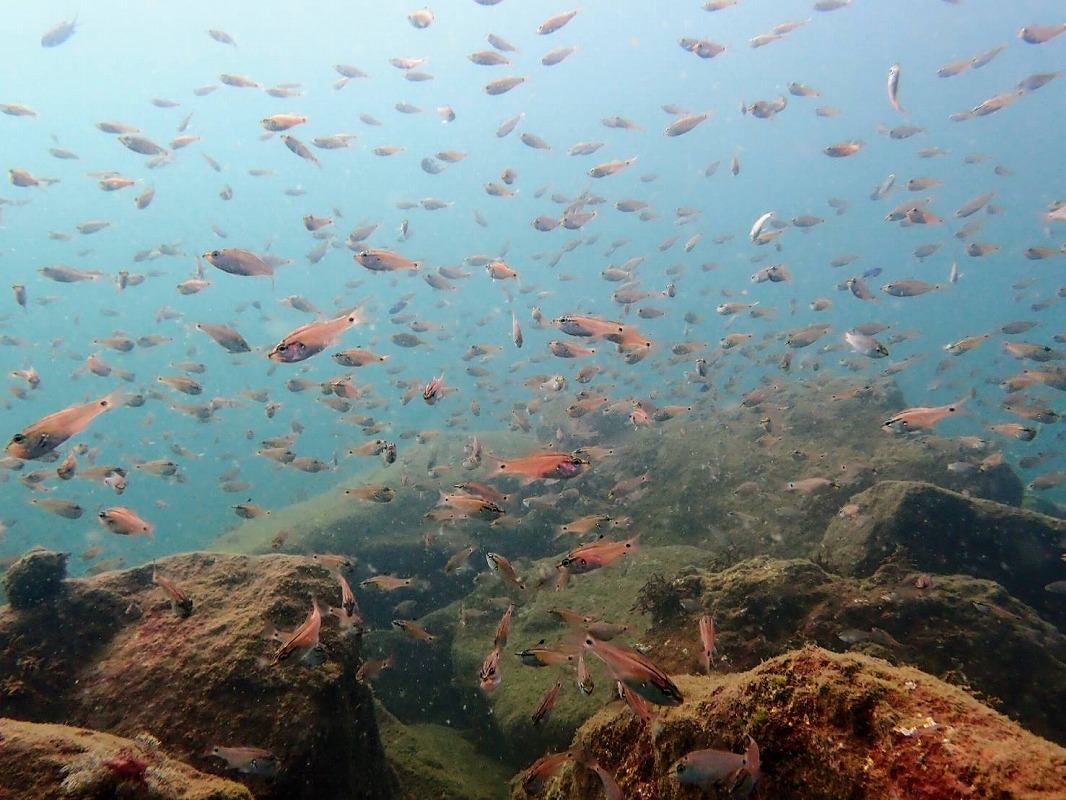 きれいなウミウシ、ダルマオコゼ、メガネカラッパ、アジの群れ、大量のネンブツダイ、貝をむさぼり食べるマダコ、クロイシモチ、オニオコゼなどなど生物いっぱいでした!