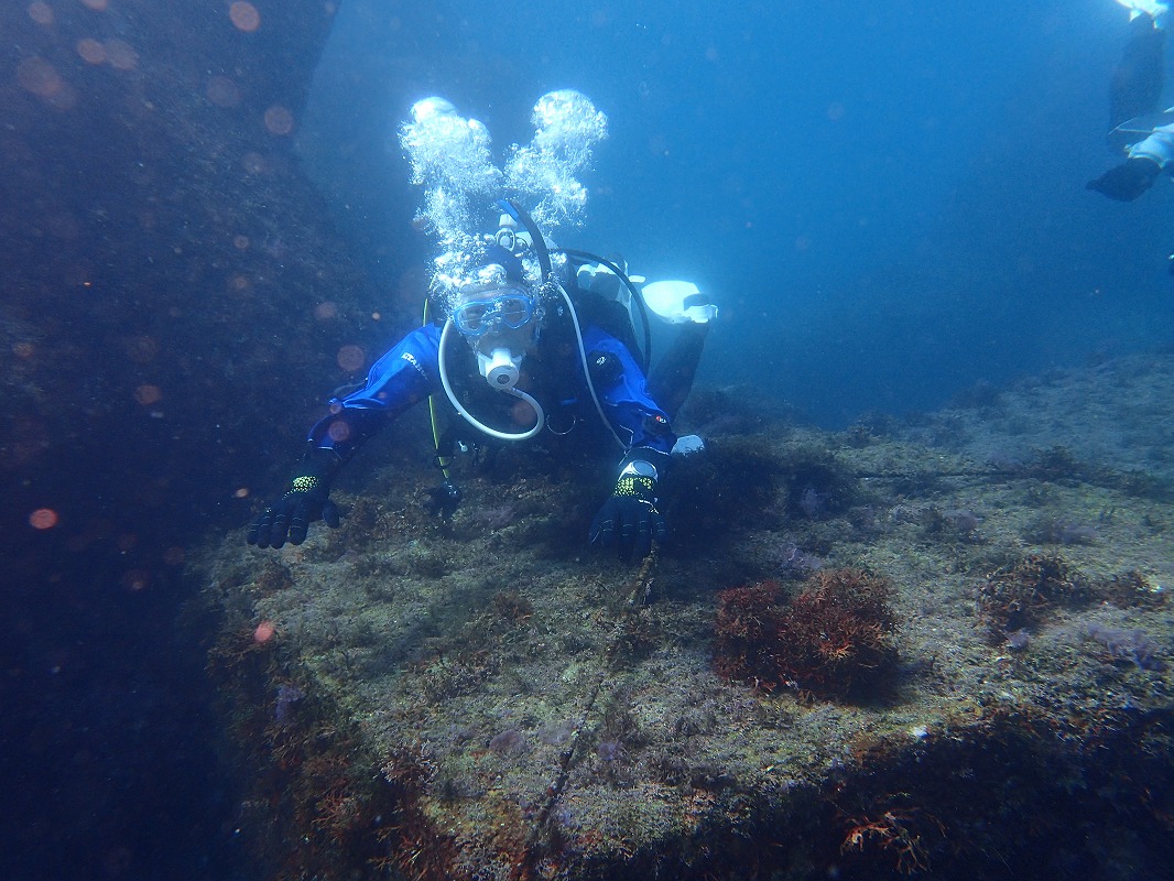 ドライスーツなので11月下旬の海でも超快適に潜れちゃいます。
