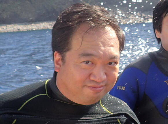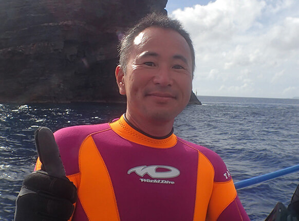 初めて行った石垣島で体験ダイビングをしたのを機に、世田谷で探してブルーアース21世田谷に入校しました。40歳を超えたメタボリーマンだったので、最初は苦労したけどブルーアースの指導と独学でダイバーになれました。